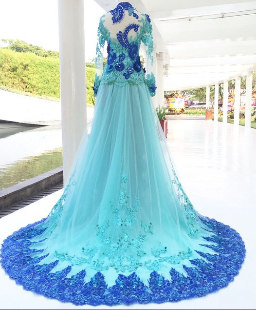 Wedding dress kebaya modern light blue color as new design 2016.Fall season 2016 as the end of the year 2016 we bring you a good discount price with a good our design wedding dress style like gown kebaya,kebaya kuu baru etc.Here one of most our new design wedding dress kebaya modern have done design by jayakebaya designer with blu light color and of course we take a design with brocade material fabric in high quality.With long sleeves and v neck on neckline make this dress really beautiful and amazing for your wedding party.